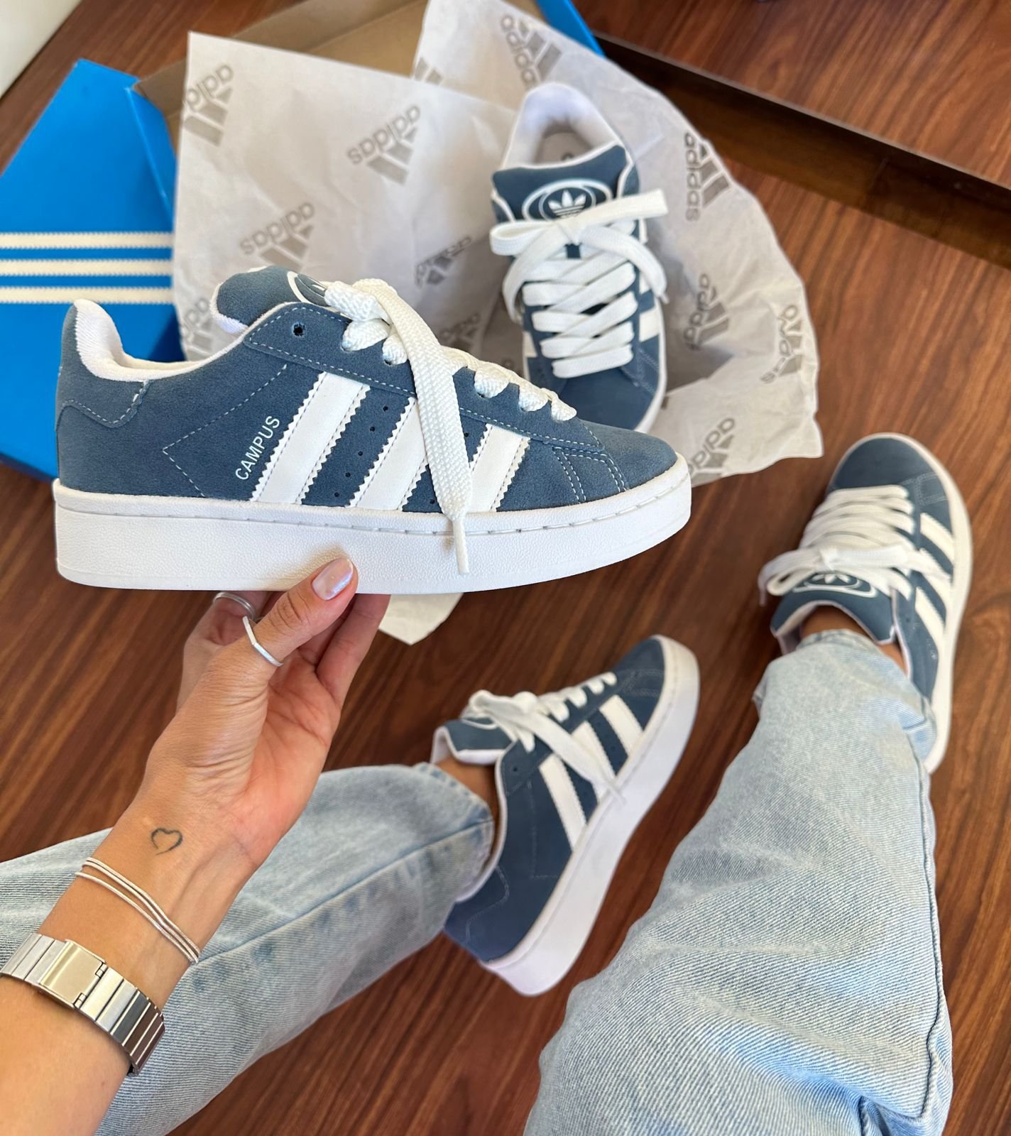 Las Adidas Campus 00s Navy Blue combinan lo mejor de lo retro con un toque moderno. Su parte superior de gamuza azul marino, acompañada de cordones, lÃneas y suela blanca, crea el contraste perfecto para un look urbano y sofisticado. Este modelo clásico, fiel a su esencia, es ideal para quienes buscan estilo y comodidad en cada paso. Campus 00s Navy: la opción atemporal que nunca pasa de moda.