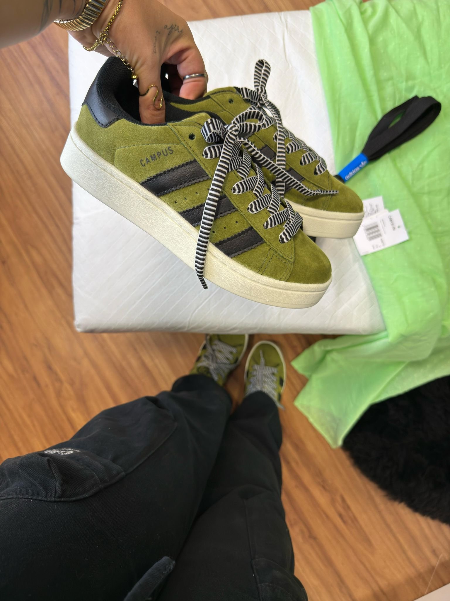 La Campus 00s se renueva en un vibrante tono pistacho, destacando con cordones en blanco y negro para un look versátil y lleno de personalidad. Las tres lÃneas negras refuerzan su esencia noventera, mientras que la suela blanca proporciona el equilibrio perfecto entre estilo y frescura. Un modelo que combina color, contraste y actitud en cada paso.
