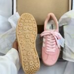 Un Ãcono del estilo retro con un giro femenino y fresco. Esta Adidas Gazelle presenta una base en suave gamuza rosada, contrastada con las clásicas tres lÃneas blancas que destacan su identidad deportiva. La suela beige de goma no solo aporta un look vintage, sino también tracción y comodidad para el uso diario. Ideal para quienes buscan destacar con un toque delicado pero con carácter.