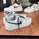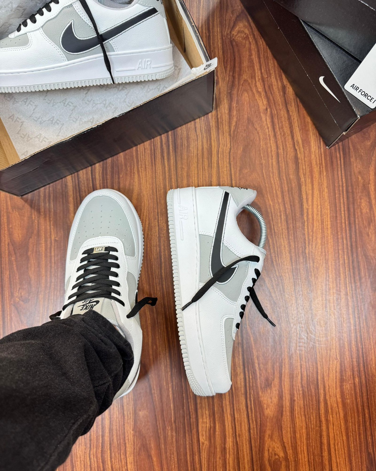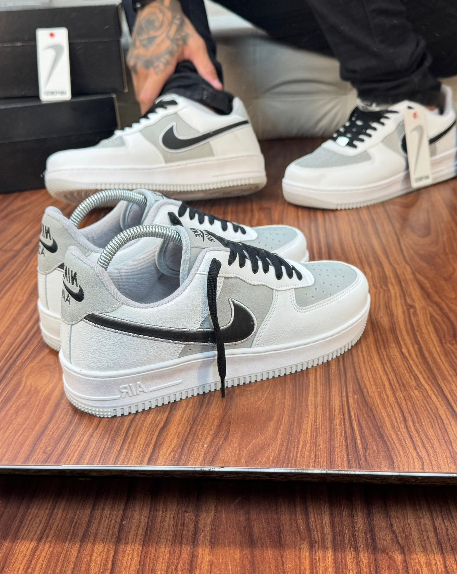 Sencillez con carácter. Estas Nike Air Force 1 combinan una base blanca limpia con paneles en gris suave, realzados por un logo negro y cordones a juego que aportan un contraste elegante y urbano. La suela blanca mantiene el ADN clásico del modelo, mientras los detalles oscuros le añaden presencia y definición. El equilibrio perfecto entre discreción y personalidad.