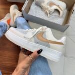 Inspiradas en la armonÃa de los tonos tierra, estas Nike Air Force 1 combinan beige y gris en la parte superior para un look sutil y sofisticado. La suela blanca aporta limpieza visual, mientras el logo marrón añade un contraste cálido que eleva el diseño. Perfectas para quienes valoran el estilo minimalista con personalidad y elegancia.