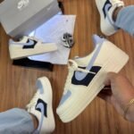 Un diseño que transmite frescura y estilo. Estas Nike Air Force 1 destacan por su parte superior blanca con sutiles acentos en negro y celeste, combinados con el logo azul hielo y una suela blanca impecable. El contraste suave y moderno las convierte en una opción versátil para cualquier look, manteniendo la esencia clásica de las AF1 con un giro refrescante y actual.