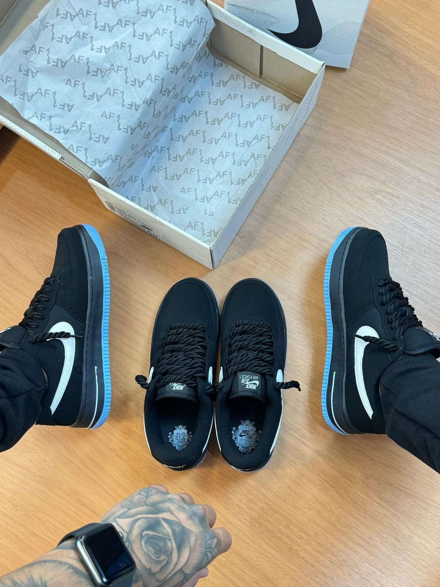 Diseñadas para destacar sin esfuerzo. Estas Nike Air Force 1 presentan una silueta completamente negra con un logo blanco que resalta al instante, mientras un cuarto inferior de la suela en celeste intenso añade un giro inesperado y llamativo. Una mezcla perfecta entre sobriedad y energÃa, ideal para quienes quieren llevar lo clásico al siguiente nivel con un detalle que rompe esquemas.