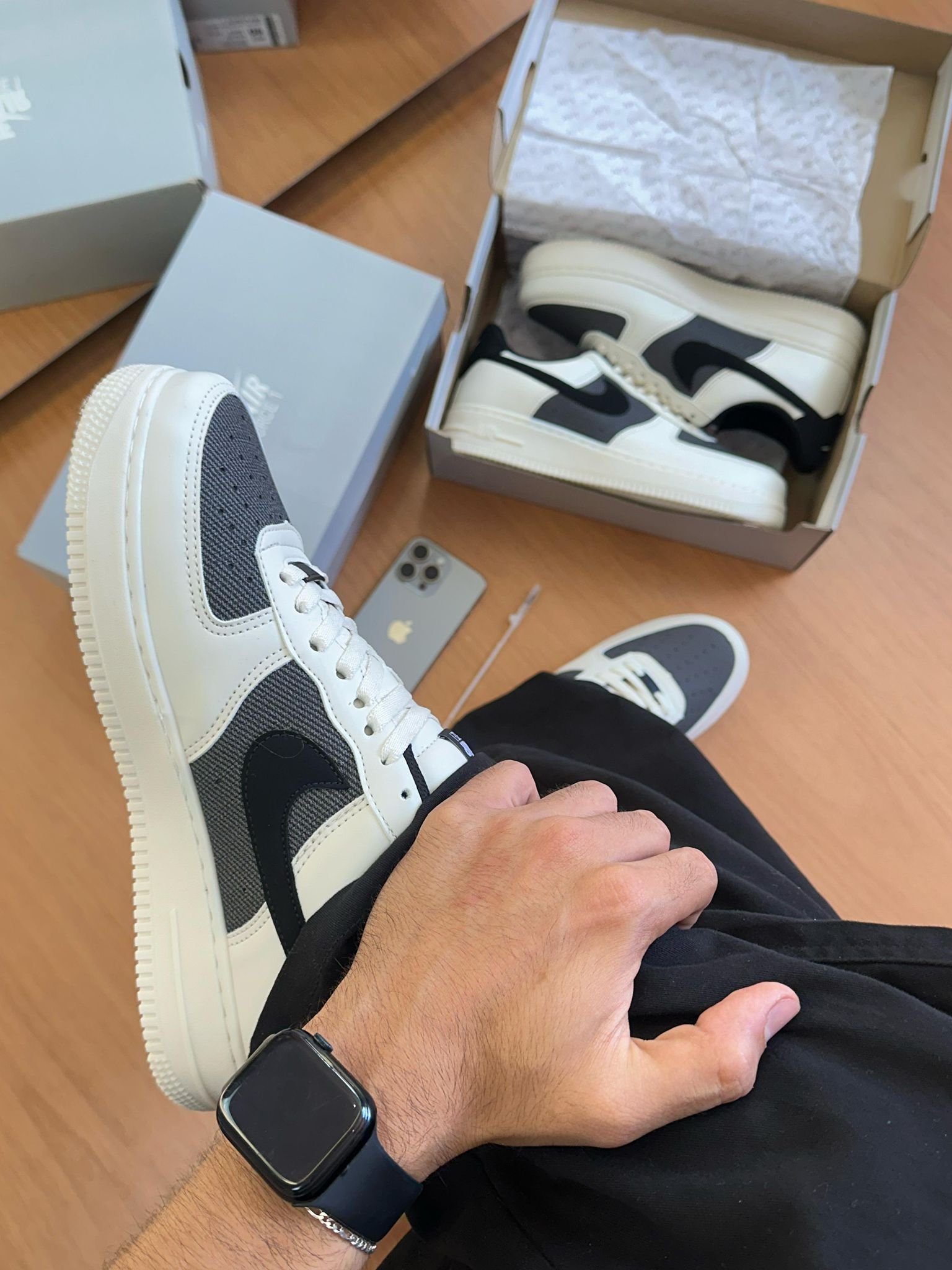 El equilibrio perfecto entre estilo y sobriedad. Estas Nike Air Force 1 combinan una parte superior en blanco con detalles en gris oscuro, el clásico logo negro y una suela totalmente negra que potencia su carácter urbano. Ideales para quienes buscan destacar con elegancia sin perder el toque deportivo que define a las AF1. Versatilidad, diseño y actitud en cada paso.